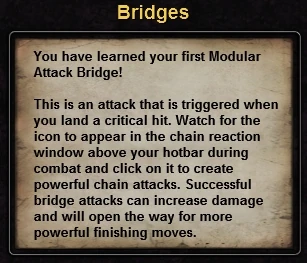 Chained Attacks. Chained Attacks are programmed sequences of specific attacks that, when performed sequentially in the correct order, can have a devastating cumulative effect. When you initiate the first attack in a chained sequence, the Chained Attack button changes to the next attack in the sequence. There is a red bar next to the attack icon in the window … you must get the attack off before the bar goes down in order to keep the chain going. You can trigger the next attack in a chain by clicking on the attack either in the Chained Attack window or on the Quick Bar.
