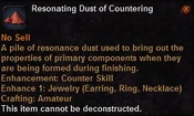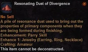 To enhance jewelry items, you can add dusts/powders/etc to increase a variety of stats and attributes. These are called Resonating Dusts (other tiers use powders, shards, etc.).