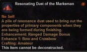 - Adroit Healthy Stud of the Marksman +6 Dexterity +30 Hit Points +2 Ranged Damage Equipped Effect: Jeric's Honor trilliant cut, attunment powder of health, resonating dust of the marksman